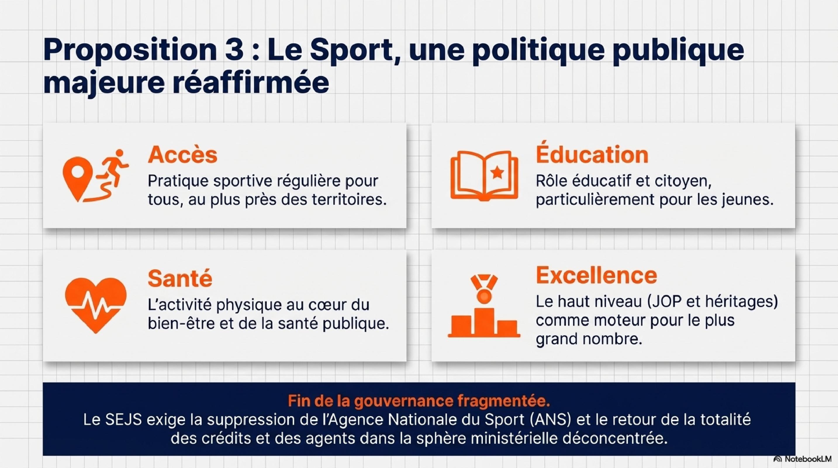 À l’issue de ces travaux, le Bureau national du SEJS a validé un pack cohérent de six motions, dont la motion « pilotage et organisation » constitue la motion chapeau. Ces motions déclinent une ligne politique structurée, couvrant à la fois les enjeux statutaires, l’organisation des services, et les orientations portées en matière de sport, de jeunesse et d’engagement. Elles sont reprises dans la présentation infographique jointe.