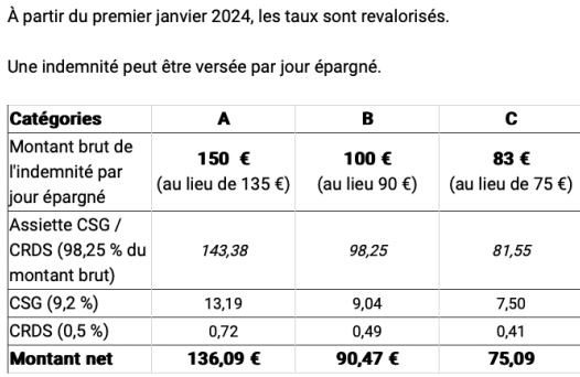 Cet arrêté fixe notamment les montants forfaitaires par jour d'indemnisation du CET par catégorie (début 2022 : A : 135€, B : 90€, C : 75€)